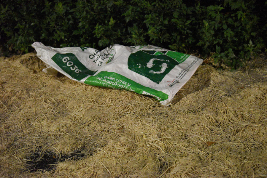 | Theo ghi nhận vào tối 8/8, cho dù trời mưa nhưng lông gia cầm vẫn còn nguyên trên tuyến đường. |