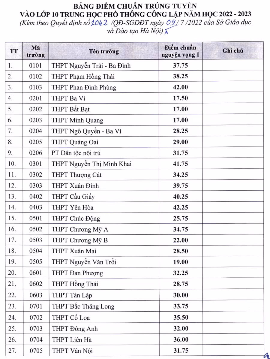 Sau đó 1 ngày, Sở GD&ĐT Hà Nội tổ chức họp xét duyệt điểm chuẩn vào lớp 10 THPT năm học 2022-2023 với sự tham gia của hiệu trưởng các trường THPT công lập, hiệu trưởng các trường THPT chuyên và công bố điểm chuẩn vào lớp 10 ngay sau khi phê duyệt.