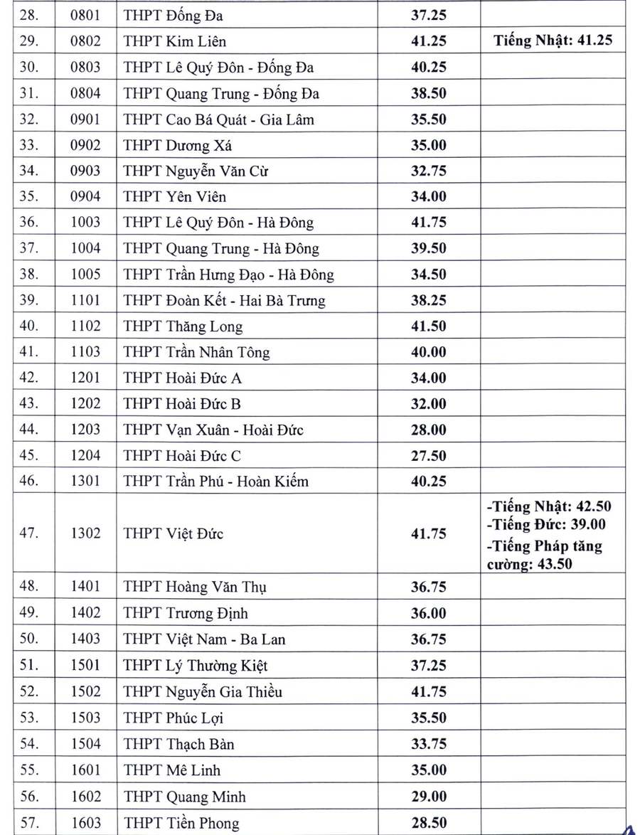 Cụ thể, có 1.382 bài thi môn Ngữ văn đạt từ 9,0 đến 9,5 điểm (năm học 2021-2022 có 109 bài thi đạt từ 9,0 đến 9,25 điểm); 3.364 bài thi môn Ngoại ngữ đạt điểm 10 (năm học 2021-2022 có 4.742 bài thi); 256 bài thi môn Toán đạt điểm 10,0 (năm học 2021-2022 có 63 bài thi). Năm học 2021-2022 Hà Nội tổ chức thi thêm môn thứ tư là môn Lịch sử, trong đó có 2.070 bài thi đạt 10,0 điểm.