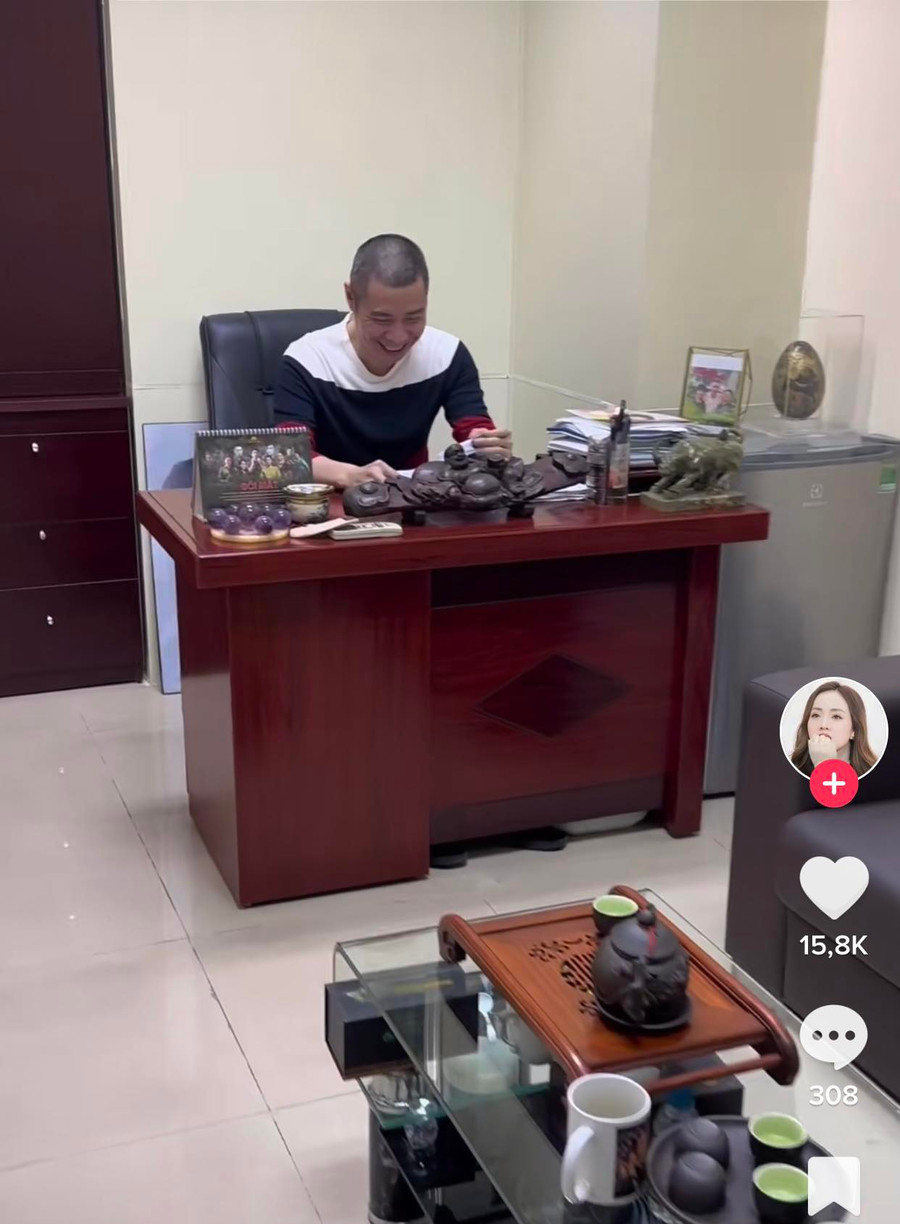 Trong đoạn clip, NSND Công Lý tỏ ra vô cùng vui vẻ, chăm chú làm việc.