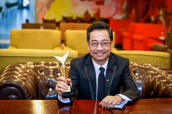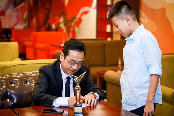 "Ông trùm" nhận cúp giải thưởng diễn viên nam ấn tượng.