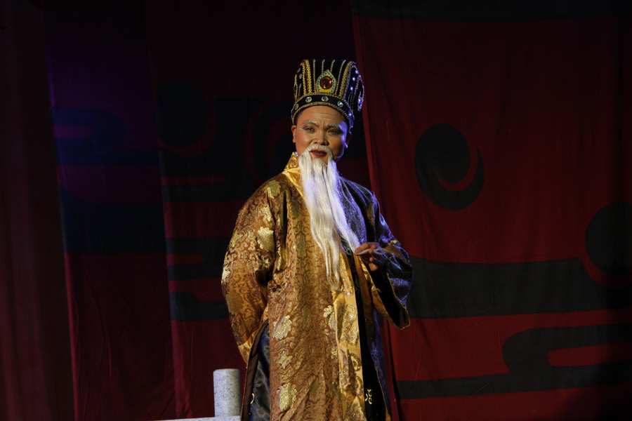 | NSND Trọng Bình hóa thân thành Nguyễn Lê lúc thanh niên và khi già trong vở cải lương 'Vua Thánh triều Lê'. Ảnh: Bình Thanh |