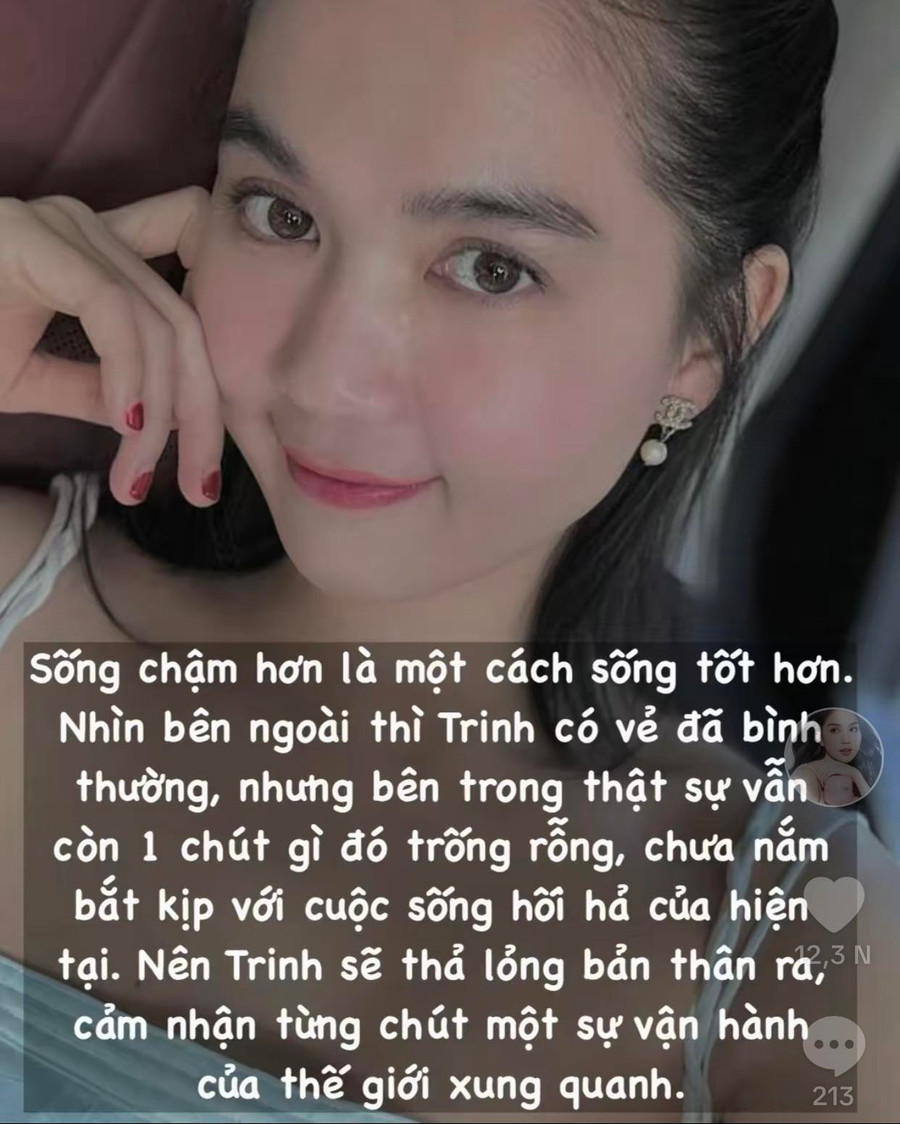 Ngoài ra, Ngọc Trinh còn tâm sự thêm rằng, bản thân vẫn còn cảm thấy trống rỗng dù bên ngoài dường như có vẻ đã trở lại bình thường, chưa thật sự nắm bắt kịp với cuộc sống hối hả.
