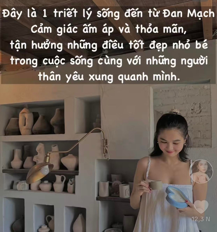 Cô cho biết: "Đây là một triết lý sống đến từ Đan Mạch, cảm giác ấm áp và thỏa mãn, tận hưởng những điều tốt đẹp nhỏ bé trong cuộc sống cùng với những người thân yêu xung quanh mình.