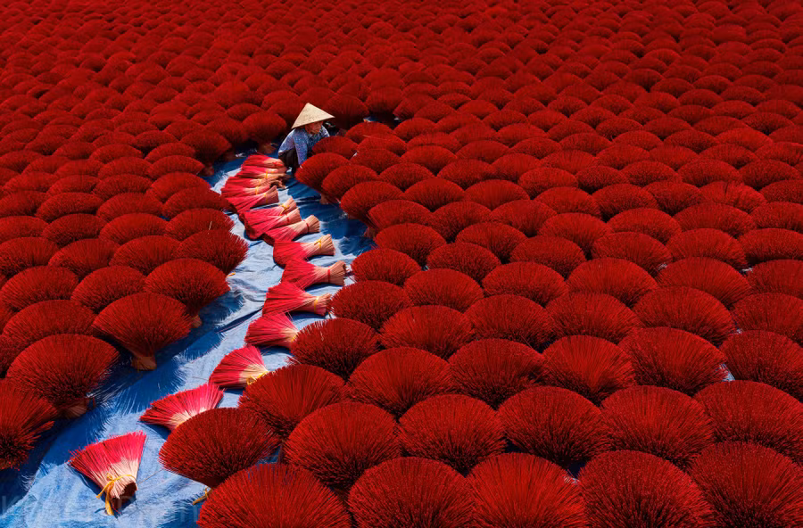 "Là phụ nữ, tôi yêu cuộc sống này theo cách của riêng mình. Tôi đặc biệt thích những bức ảnh có góc nhìn từ trên cao. Việt Nam là một đất nước xinh đẹp với những làng nghề hàng trăm năm tuổi, cảnh quan thiên nhiên tươi đẹp và những con người Việt Nam luôn cần cù trong lao động", Khánh Phan chia sẻ.