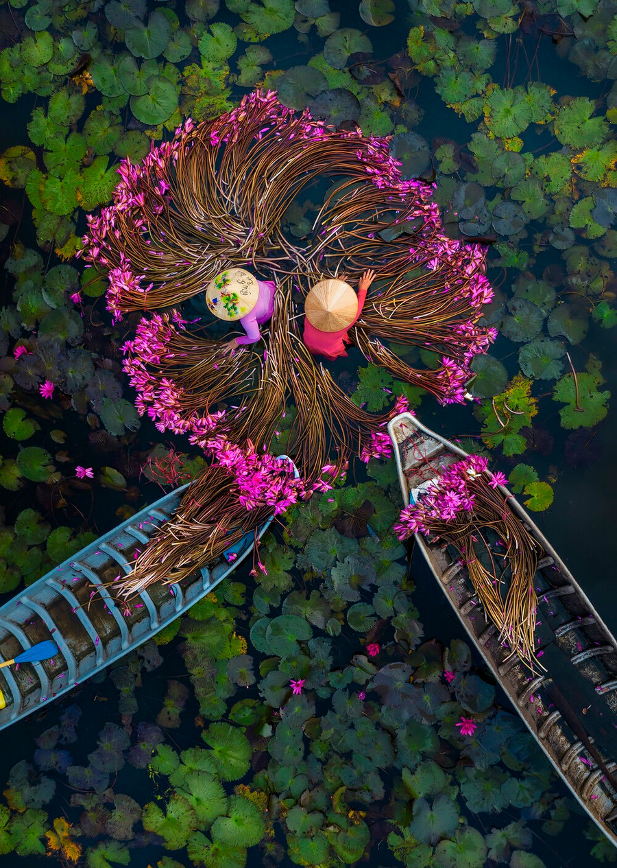 Vừa qua, bức ảnh chụp cảnh hai người phụ nữ thu hoạch bông súng mùa nước nổi ở huyện Mộc Hoá, tỉnh Long An được nhiếp ảnh gia Khánh Phan chụp vào tháng 10/2022 và đặt tên tác phẩm “Floral Dress” đoạt giải Grand Prize (giải thưởng trị giá 15.000 USD), tại Cuộc thi Ảnh & Video SkyPixel - SkyPixel Annual Photo & Video Contest được tổ chức hàng năm bởi DJI và SkyPixel – Cộng đồng nhiếp ảnh trên không lớn nhất thế giới.