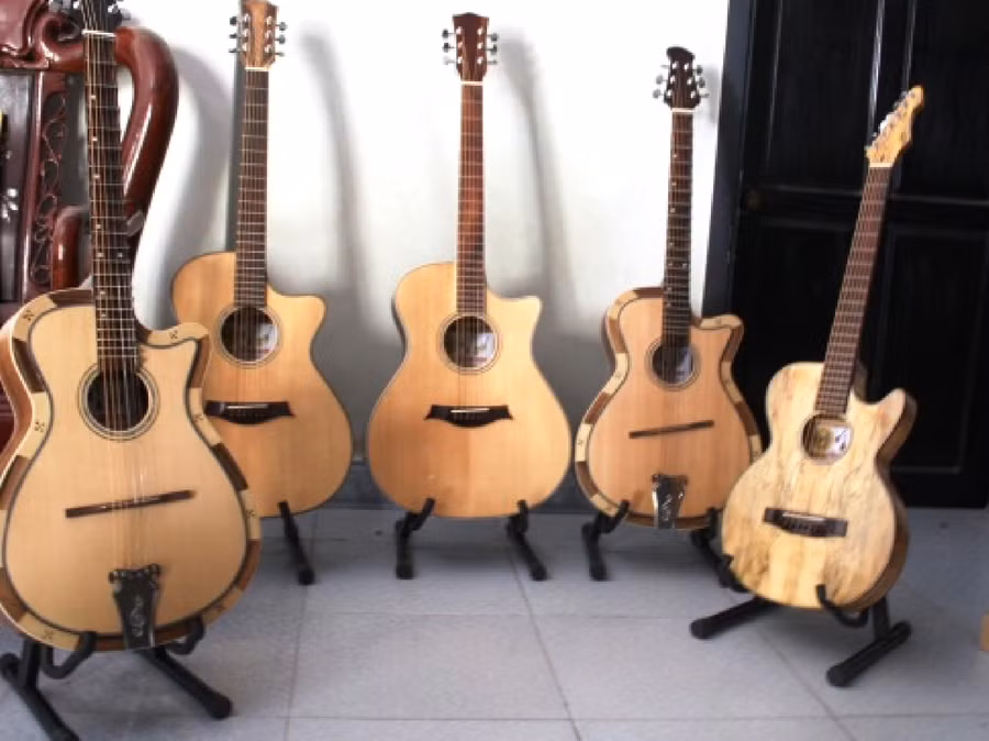 Hiện tại anh làm đàn theo đơn đặt hàng, sản lượng 200 chiếc mỗi tháng gồm các loại: guitar modern, guitar classique, guitar phím lõm, mandoline, ukulele... Đàn guitar giá thấp nhất 1 triệu đồng, cao nhất 3 triệu đồng. Mandoline, ukulele giá từ 400 ngàn đến 600 ngàn một chiếc.
