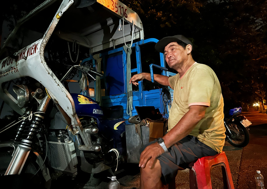 Từ sau vụ mất xe ba gác đến nay, ông không dám rời mắt khỏi xe quá lâu. Đêm đến, ông mắc võng, một đầu là thùng xe, một đầu là cây ven đường để ngủ. Trong cơn mưa lất phất giữa buổi tối tháng 7, ông Minh “cô đơn” ngồi trầm ngâm, ánh mắt xa xăm hướng ra phía hồ Đá.
