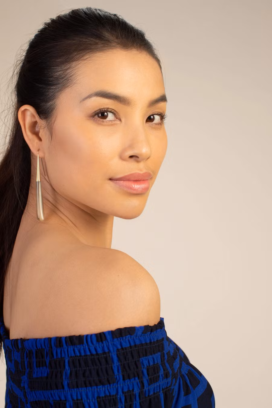 Tạm biệt son đỏ quyền lực, giờ đây Phạm Hương đổi sang lối trang điểm nhạt, son nude tự nhiên phô diễn nhan sắc mộc mạc. Kiểu tóc cột cao đơn giản chứ không còn cầu kỳ như khi xưa.