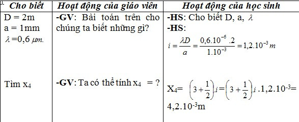 Ví dụ: Trong thí nghiệm Y- âng về giao thoa ánh sáng, tại vị trí cách vân trung tâm 4mm ta thu được vân tối thứ 3. vân sáng bậc 4 cách vân trung tâm một khoảng bằng bao nhiêu?