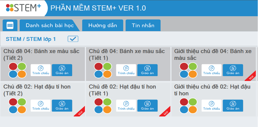 Phần mềm bài giảng điện tử STEM+ và hướng dẫn sử dụng có thể được tải tại đây: