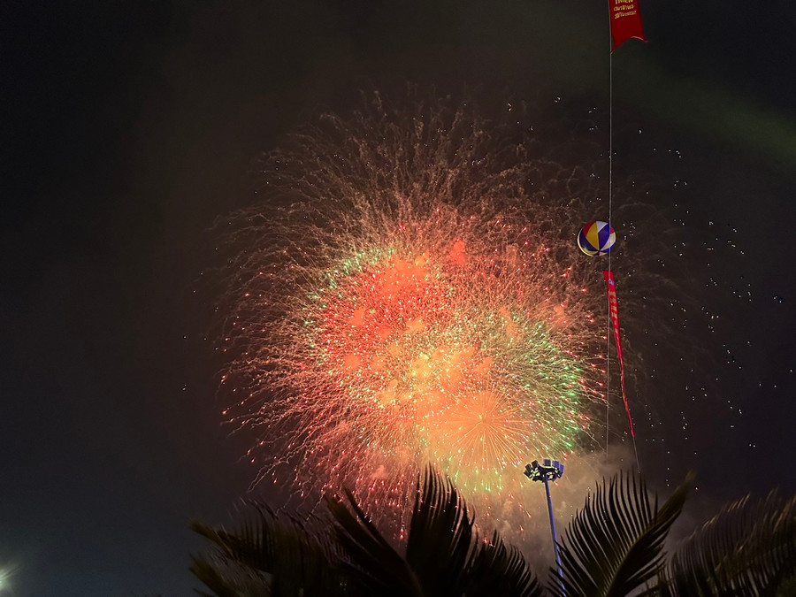 | Những quả pháo hoa tầm cao luôn nhận được những tiếng hò reo của người dân. |
