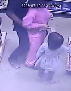Theo quan sát của camera an ninh, ban đầu có hai cô bé đứng trước quầy hàng, bé gái trông lớn hơn mặc quần áo màu hồng bất ngờ bị một người đàn ông lạ mặt từ phía sau tấn công bằng cách cọ xát vào người.
