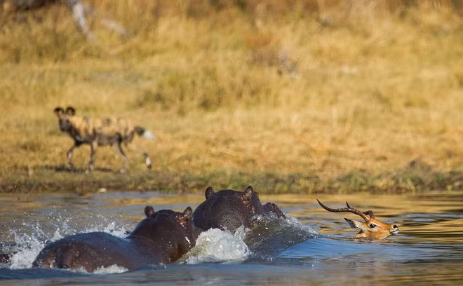 Hình ảnh hà mã tấn công linh dương ở sông Luangwa tại Vườn Quốc gia Nam Luangwa, Zambia