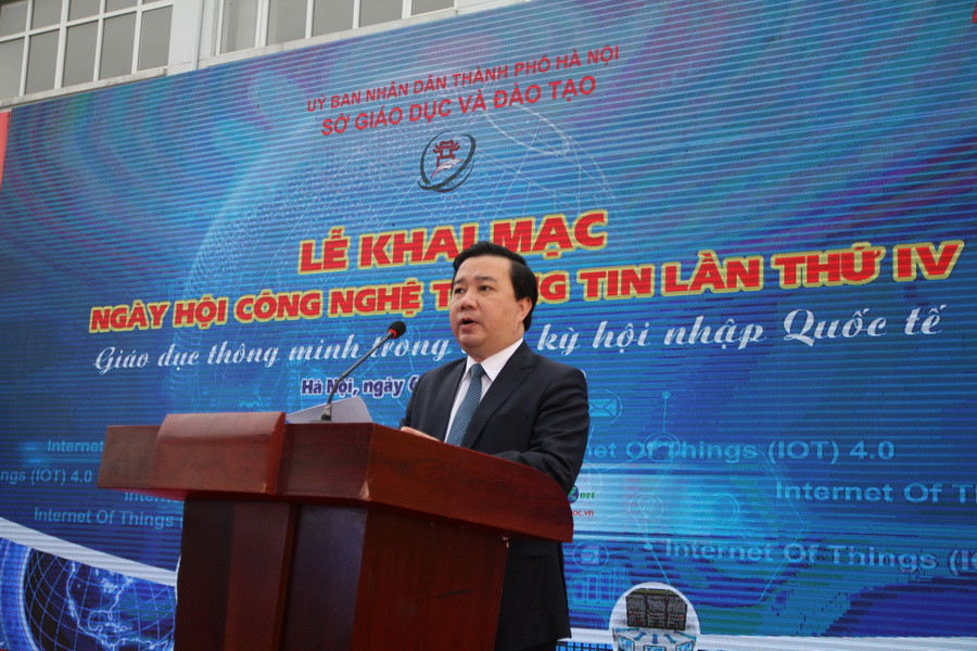 Phát biểu tại buổi lễ, Thứ trưởng Bộ GD&ĐT Nguyễn Văn Phúc ghi nhận ý nghĩa sâu sắc và những tác động tích cực, sâu rộng của ngày hội CNTT ngành GD-ĐT Hà Nội tới toàn thể cán bộ, giáo viên.