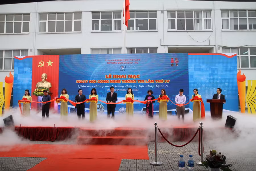 Phát biểu khai mạc, ông Chử Xuân Dũng- Giám đốc Sở GD&ĐT cho biết: Ngày hội CNTT ngành GD-ĐT Hà Nội năm nay diễn ra trong 2 ngày, từ ngày 6 đến ngày 7/4/2018 với chủ đề "Giáo dục thông minh trong thời kì hội nhập quốc tế".