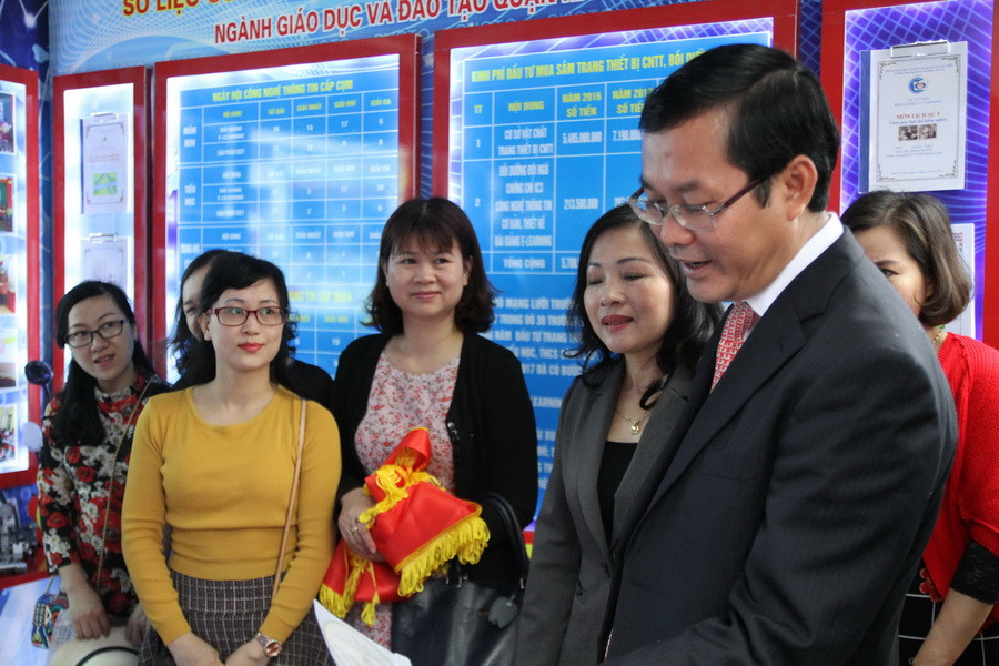 Thứ trưởng Nguyễn Văn Phúc thăm quan gian gian trưng bày của ngành GD-ĐT quận Nam Từ Liêm