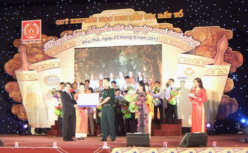 Tại buổi lễ, Quỹ Khuyến học khuyến tài Đất tổ đã trao thưởng cho các em học sinh đạt thành tích cao trong kỳ thi học sinh giỏi quốc gia, kỳ thi đại học năm 2012, học sinh nghèo vượt khó đỗ đại học, học sinh khuyết tật, học sinh đạt thành tích cao tại Hội khỏe Phù Đổng, giải thể thao toàn quốc và các thầy cô giáo có thành tích trong công tác bồi dưỡng học sinh giỏi quốc gia năm 2012 với tổng số tiền là trên 1,8 tỷ đồng. Đại diện các doanh nghiệp, các nhà hảo tâm cũng ủng hộ Quỹ Khuyến học, khuyến tài Đất tổ với tổng số tiền là 4,1 tỷ đồng.