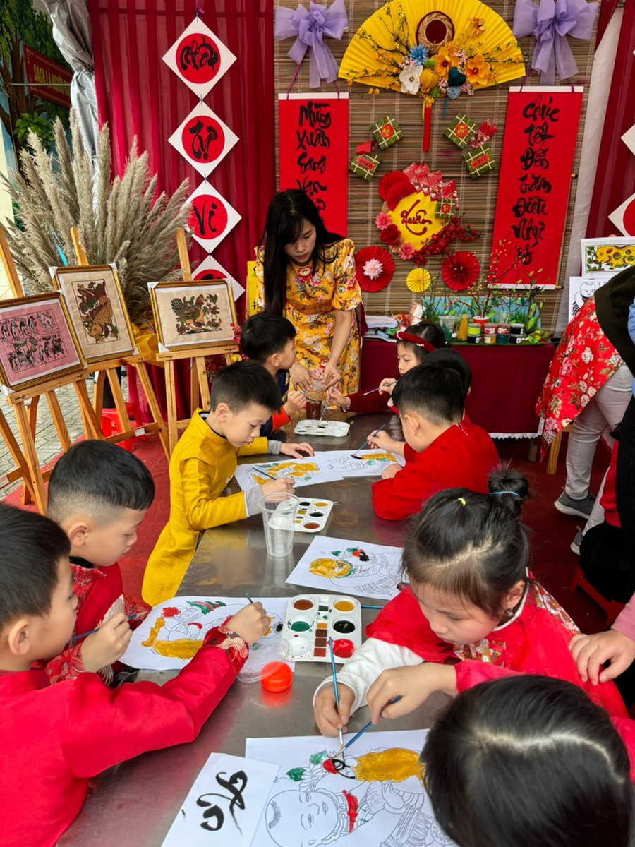 Tham gia ngày hội STEM với chủ đề “Xuân yêu thương”, học sinh được trải nghiệm gói bánh chưng; làm các món bánh ngày Tết; trưng bày mâm hoa ngũ quả; viết thư pháp và cắt dán các cành hoa ngày tết như quất, hồng, mai, đào… Rất nhiều hoạt động thú vị và ý nghĩa được nhà trường tổ chức để giáo dục học sinh về văn hóa, Tết cổ truyền và lòng yêu thương.