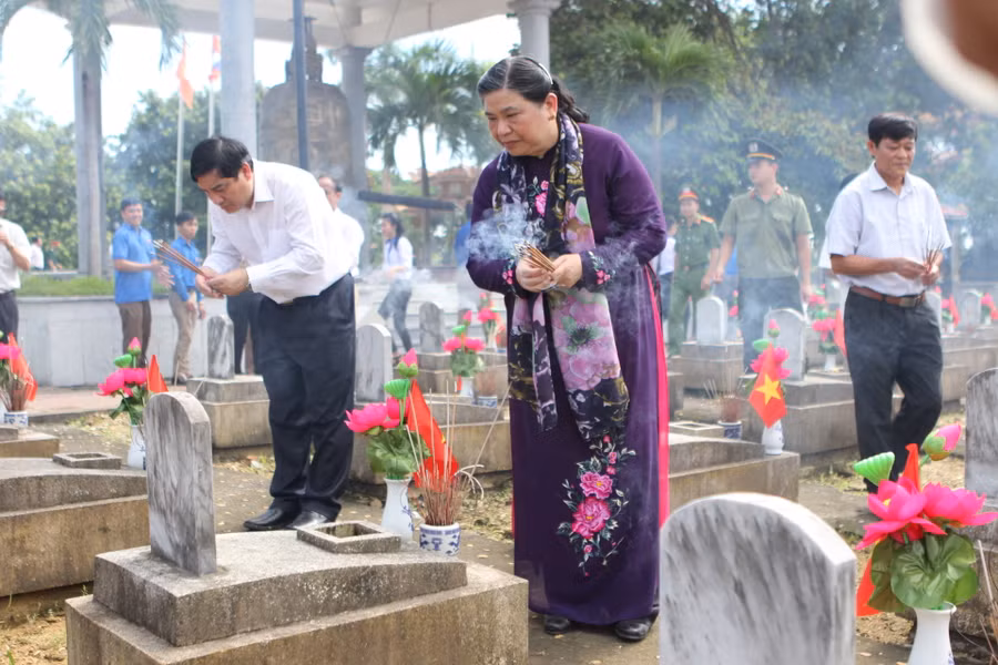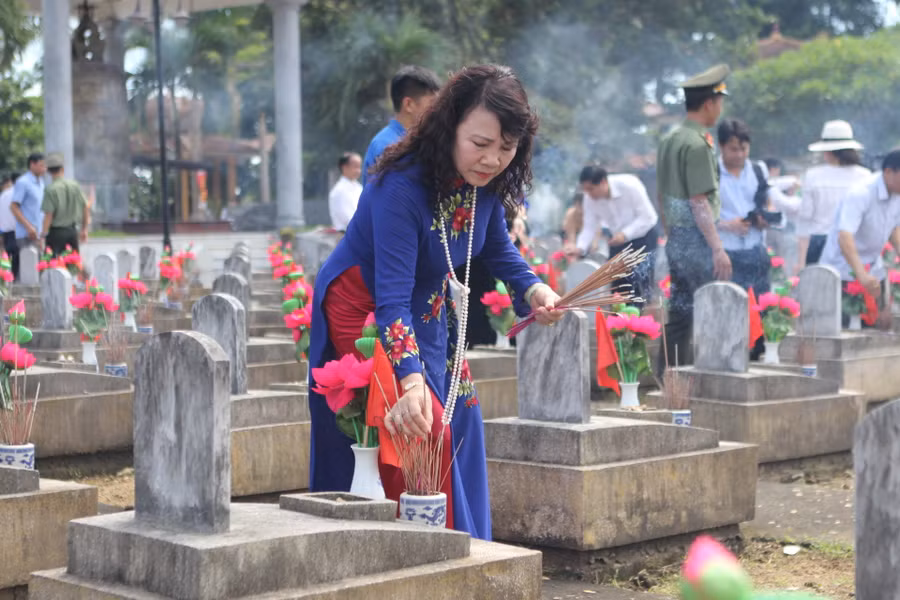 Trước đó, Phó Chủ tịch Thường trực Quốc hội Tòng Thị Phóng cùng đoàn công tác đã đến dâng hoa, dâng hương tại Nghĩa trang Liệt sỹ Quốc tế Việt - Lào.
