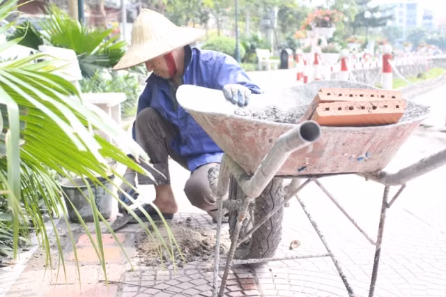 | Đoạn vỉa hè cuối cùng đang hoàn thiện |