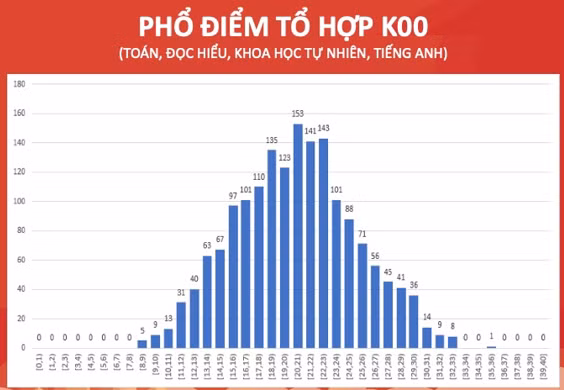 Kết quả thi của tổ hợp K00 dao động từ 8,57 – 35,49 điểm. Điểm trung bình là 20,35 điểm; điểm số có nhiều thí sinh đạt nhất là 19,65 điểm.