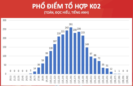 Kết quả phổ điểm các tổ hợp điểm thi của bài thi như sau: