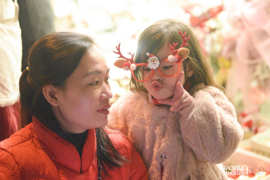 | Nhiều người rủ nhau lên phố chọn mua những mặt hàng trang trí đẹp mắt và lưu lại những bức ảnh kỷ niệm khi Giáng sinh cận kề. |