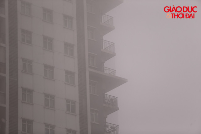 | Nhiều toà nhà ẩn sau làn sương mù dày đặc. |