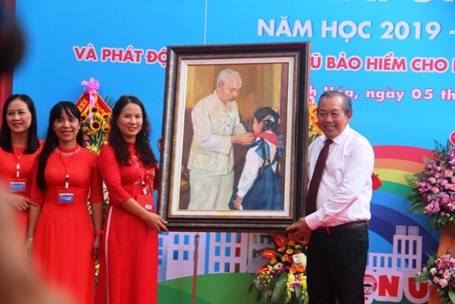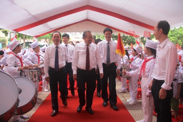 Phó Thủ tướng Thường trực Chính phủ Trương Hòa Bình dẫn đầu đoàn công tác của Chính phủ đã về dự buổi lễ khai giảng năm học mới cùng thầy và trò Trường Tiểu học Hoàng Hoa Thám (TP.Thanh Hóa).
