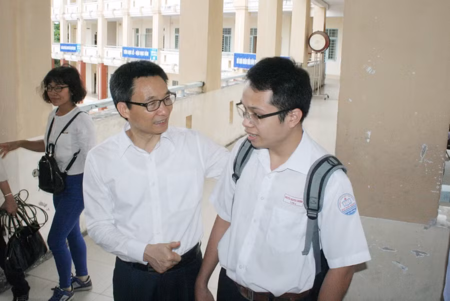 Phó Thủ tướng Vũ Đức Đam chia sẻ niềm vui với thí sinh hoàn thành sớm môn thi Ngữ văn
