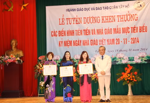 Tại buổi lễ, nhiều tập thể và cá nhân được tôn vinh trong phong trào thi đua Dạy tốt - Học tốt của Ngành GD&ĐT quận Tây Hồ năm học 2013-2014 . Có 3 thầy cô đã được nhận Bằng khen của Bộ trưởng Bộ GD&ĐT, nhiều thầy, cô nhận danh hiệu Chiến sĩ thi đua cấp cơ sở và nhiều thầy, cô được tuyên dương vì những thành tích tốt trong phong trào nghiên cứu khoa học tại các đơn vị.