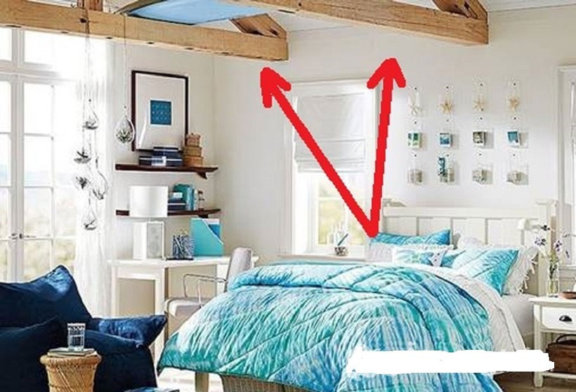 Giường ngủ nằm dưới gầm xà ngang của ngôi nhà, mà gầm xà ngang đại diện cho áp lực nặng nề. Giường ngủ mà đặt dưới gầm xà ngang thì chắc chắn rằng ảnh hưởng đời sống tâm lý tư tưởng và từ đó vợ chồng rất là hay khắc khẩu và cãi vã.