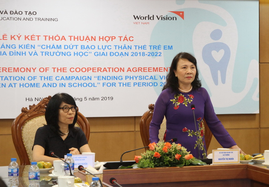 Đánh giá cao nỗ lực của Tổ chức Tầm nhìn thế giới trong việc thực hiện sáng kiến chấm dứt bạo lực thân thể trẻ em trong gia đình và trường học, Thứ trưởng Nguyễn Thị Nghĩa nhấn mạnh: Thỏa thuận hợp tác có vai trò quan trọng trong việc chấm dứt tình trạng bạo lực đối với trẻ em, qua đó góp phần đảm bảo an sinh cho trẻ em Việt Nam.