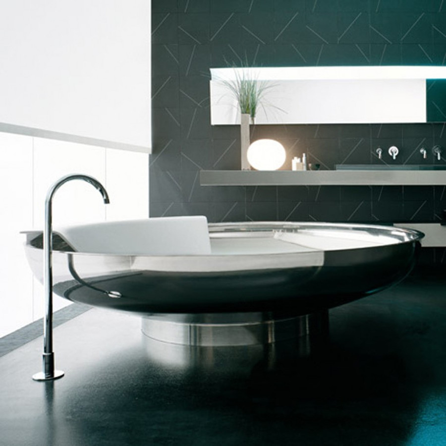 Những chiếc bồn tắm sáng tạo được thiết kế với hai đầu được gắn cố định vào tường bằng thép không gỉ, van xả được làm ở giữa đáy bồn, khi xả nước, nước chảy vào khe thoát nước ở sàn nhà sẽ được sử dụng nhiều trong tương lai. Loại bồn tắm này được thiết kế thoai thoải cho bạn cảm giác dễ chịu như nằm trên một chiếc võng.