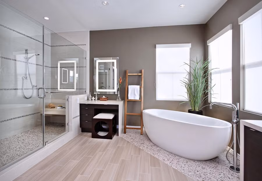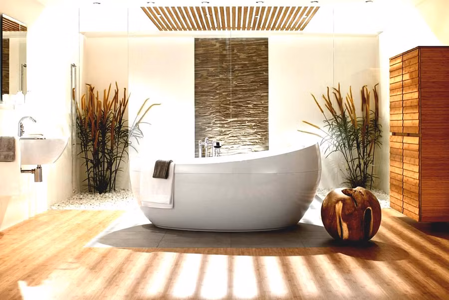 Với những người yêu thích cuộc sống hòa mình vào thiên nhiên thì các mẫu phòng tắm mở với những khoảng không gian rộng tràn ngập cây xanh, mang con người đến gần với thiên nhiên sẽ là một xu hướng thiết kế mới rất tuyệt vời.