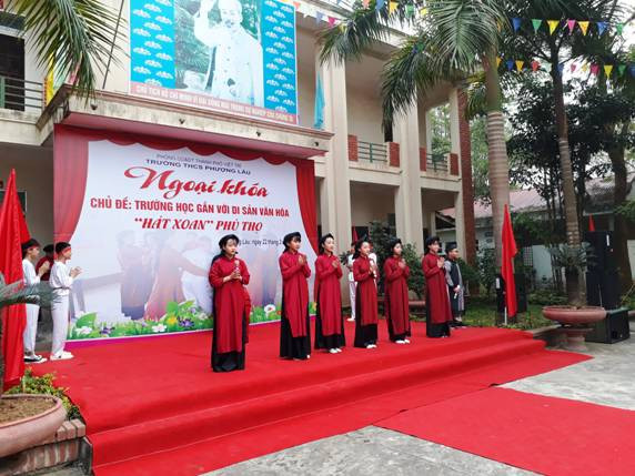Mới đây nhất (ngày 22/3), tại Trường THCS Phượng Lâu (thành phố Việt Trì) đã tổ chức chương trình ngoại khóa với Chủ đề “Trường học gắn với Di sản văn hóa hát Xoan Phú Thọ”.