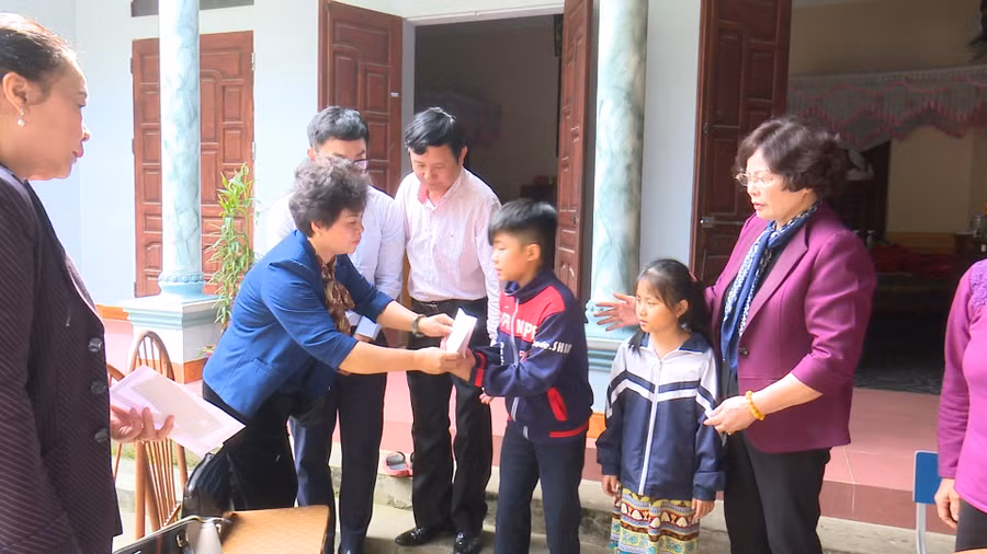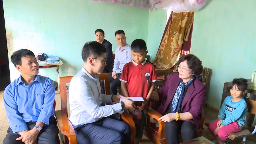 Đến thăm các em tại các gia đình, đoàn đã tặng mỗi em 01 suất quà trị giá trên 8 triệu đồng. Nhân dịp này Văn phòng UBND tỉnh, Hội Khuyến học huyện Phù Ninh cũng tặng mỗi em 1 triệu đồng. Ngoài ra các em còn nhận được quà từ Chủ tịch Hội Khuyến học tỉnh Phú Thọ - Nguyễn Thị Kim Hải và các cá nhân, thành viên đi trong đoàn.