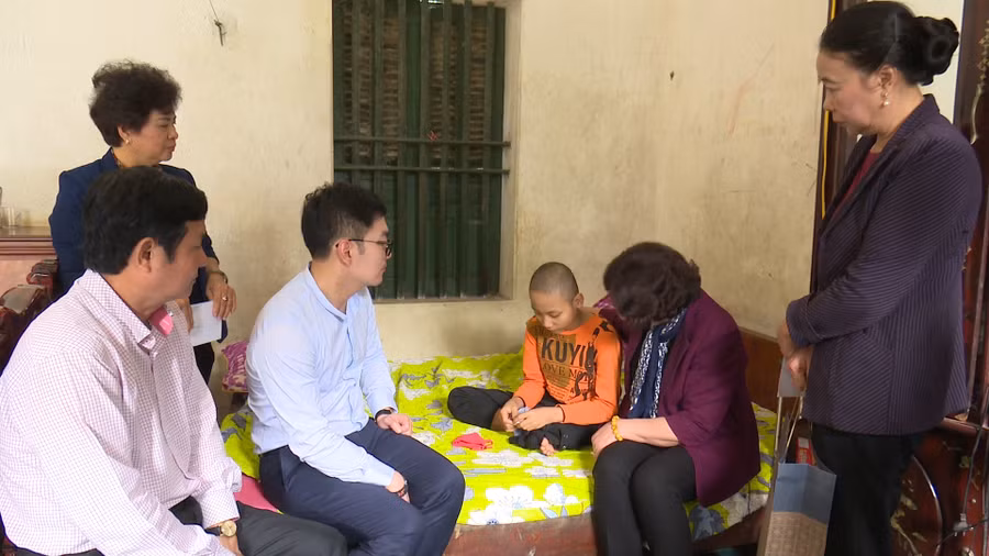 Tại xã Gia Thanh, đoàn tới thăm gia đình em em Triệu Xuân Thủy, sinh năm 2010, học sinh lớp 4A- Trường Tiểu học xã Gia Thanh, mẹ chết khi em 3 tuổi, bố bị thần kinh, hai bố con sống cùng ông nội đã 86 tuổi, già yếu. Cả gia đình không có tài sản gì đáng giá, căn nhà hiện cháu đang sống cùng ông nội và bố bị bệnh cũng do quỹ hội Cựu chiến binh vận động xây tặng hiện cũng đã xuống cấp.