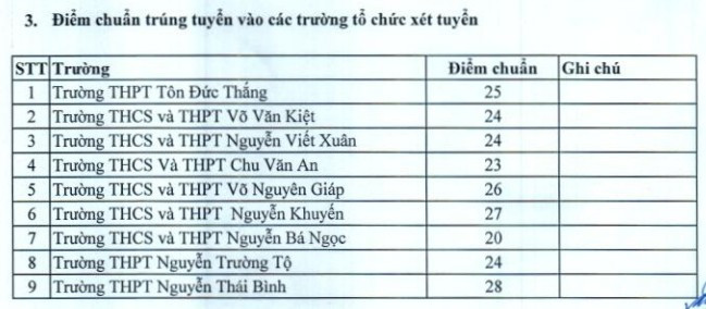 Trên cơ sở kết quả thi tuyển, xét tuyển, chỉ tiêu được giao, điểm chuẩn, các trường lập danh sách trúng tuyển nguyện vọng 2 và nguyện vọng 1 điều chỉnh trình Sở GD&ĐT phê duyệt.