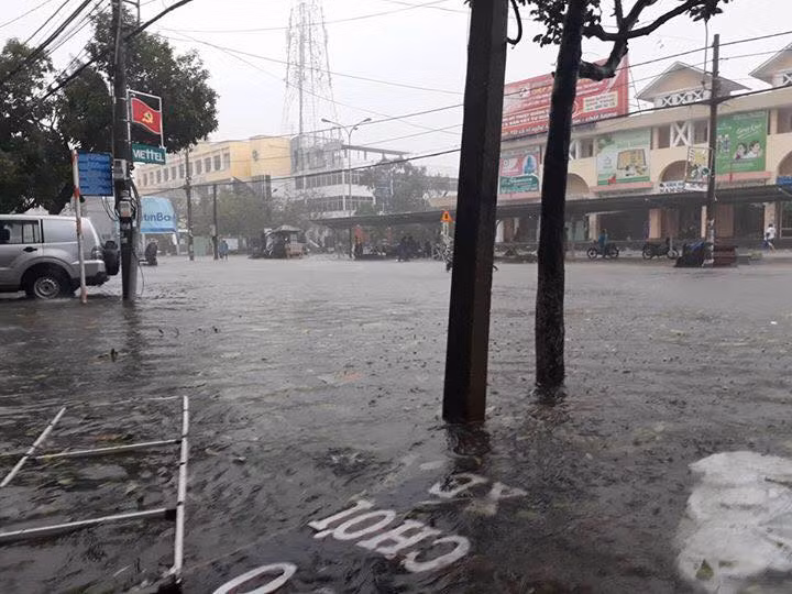 Đường phố Tuy Hòa đã ngập trong mưa bão