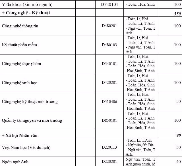 Các ngành ngoài Sư phạm, trường tuyển thí sinh có hộ khẩu thường trú ở các tỉnh Đồng bằng sông Cửu Long;