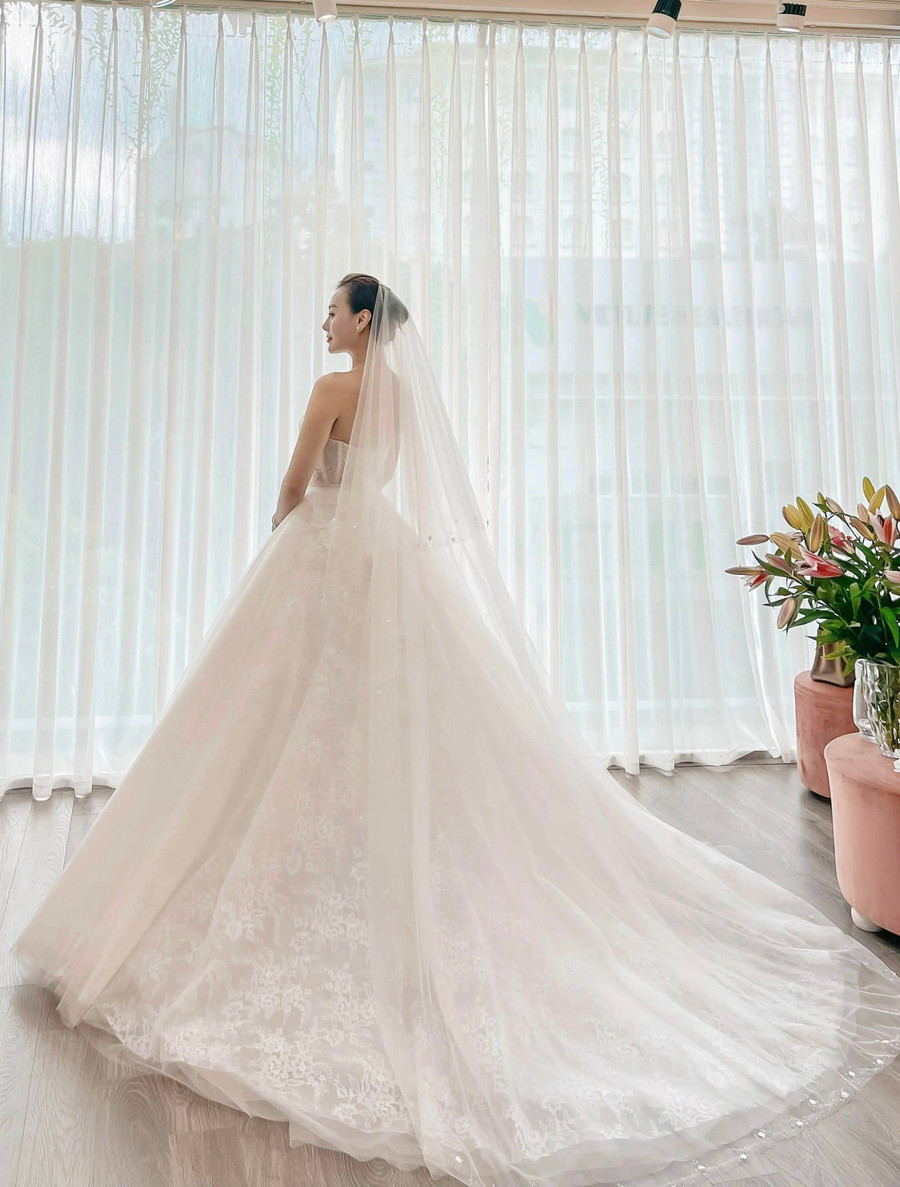 | Phương Oanh “nhá hàng” hình ảnh thử váy cưới. |