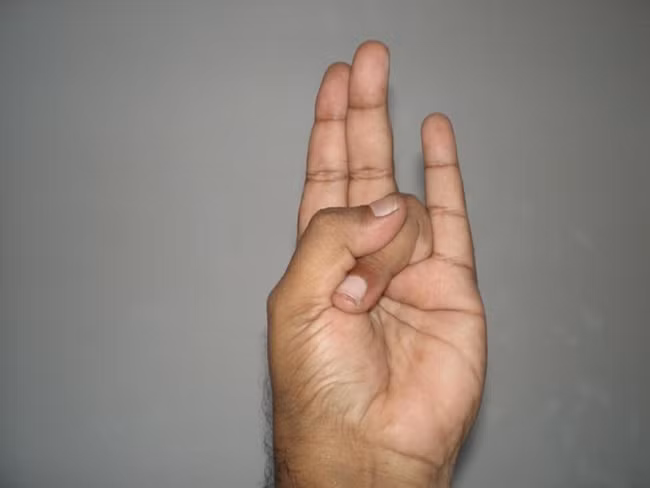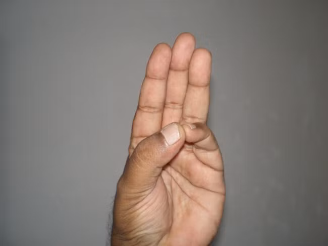 Động tác này gần giống động tác đầu tiên, nhưng thay vì hai đầu ngón tay trỏ và ngón tay cái chạm vào nhau, thì bạn phải giấu ngón trỏ bên dưới ngón cái.