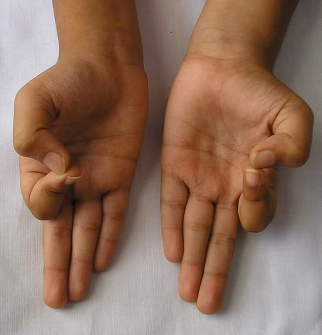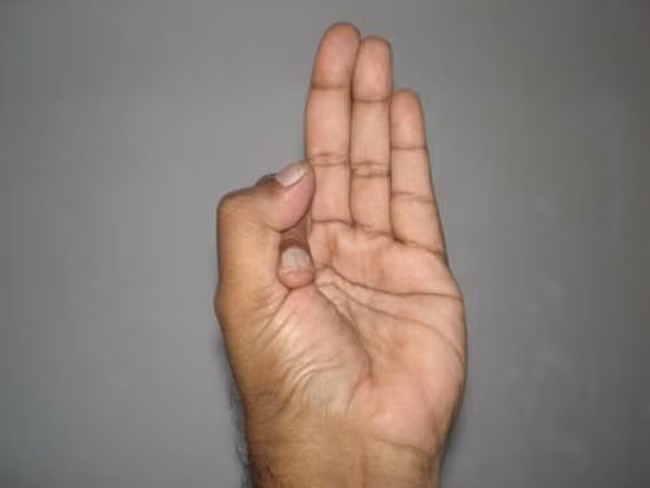 Chạm đầu ngón cái vào ngón út, các ngón khác giữ thẳng. Hãy thực hành tư thế này nếu bạn bị viêm khớp, mất nước hoặc rối loạn hormone.