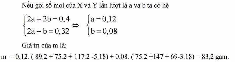 Giá trị của m là: A. 73,4. B. 77,6. C. 83,2. D. 87,4.