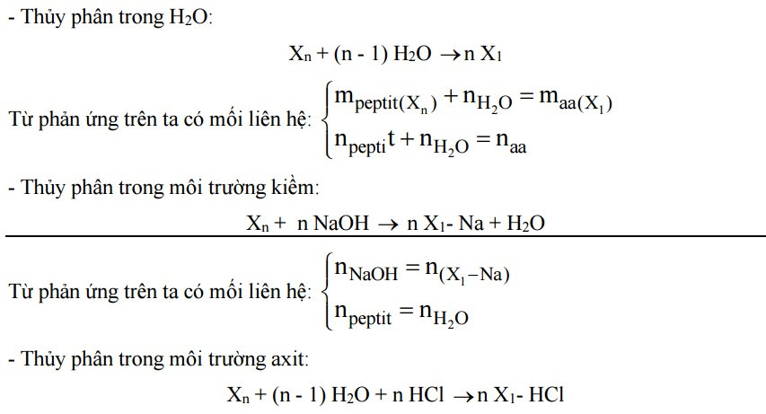 Quan hệ về phản ứng thủy phân hoàn toàn peptit: