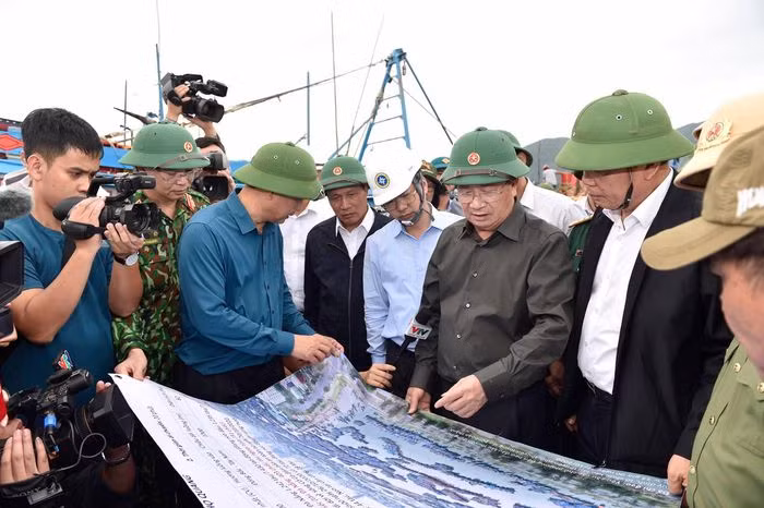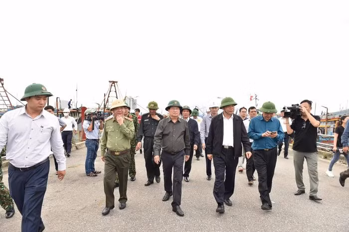 Phó Thủ tướng Trịnh Đình Dũng kiểm tra công tác chuẩn bị ứng phó với bão số 9 tại âu thuyền Thọ Quang. Ảnh: VGP/Nhật Bắc
