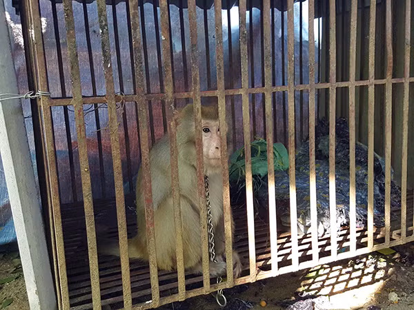 | Cảm xúc buồn bã của một chú khỉ bị nuôi nhốt trong lồng sắt, cách li tự nhiên |
