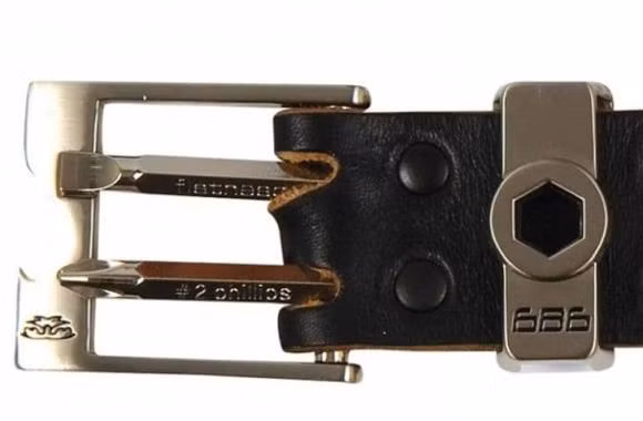 Chiếc thắt lưng này có thể là một trợ thủ đắc lực trong trường hợp bạn cần dụng cụ nhưng không có chúng. Có 2 tua vít giấu trong khóa và một chìa khóa Allen để bạn gài thắt lưng vào.